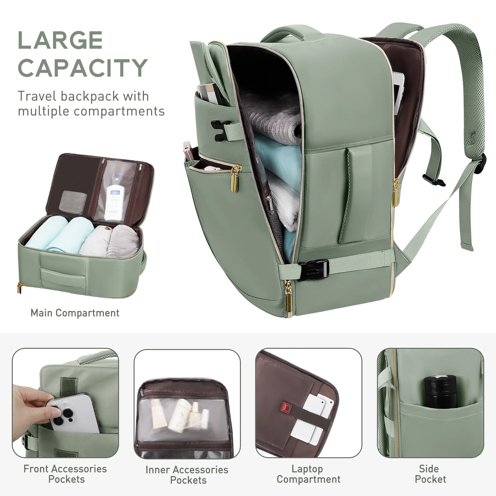 - ✈【Secure Practical Long-Lasting Comfort】Durable waterproof material, smooth zippers,strong seams. INSIDE WET AREA for wet clothes. ANTI-THEFT POCKET on the back put your ID, passport. LUGGAGE STRAP for suitcase handle. TIGHTEN SIDES DESIGN give extra secure since people have to unclip it to get into it. Padded and ergonomically designed ADJUSTABLE SHOULDER STRAPS and the BACK PANEL provide excellent lumbar support, you can carry it for extended periods without experiencing any discomfort or strain.